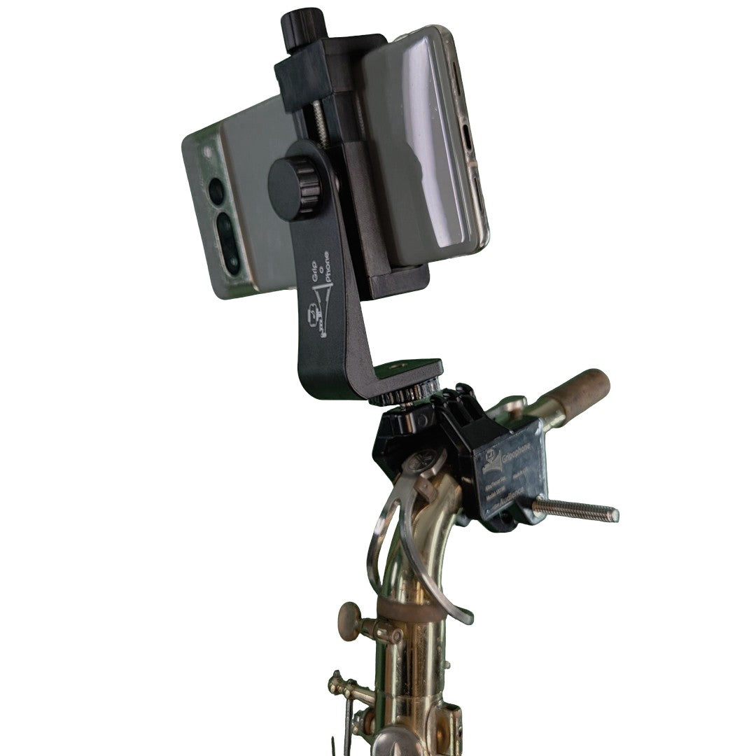 Attaches firmly to the saxophone neck using a dual-sided clamp lined with thick foam pads. While still allowing for free movement of the octave key. Protects your saxophone and your phone—no scratches, no slipping.